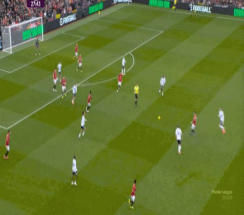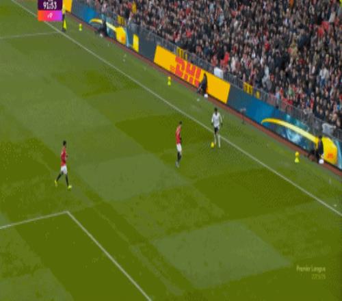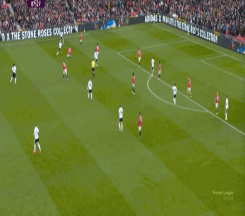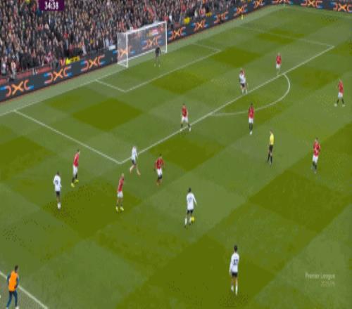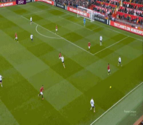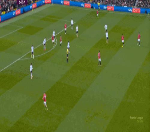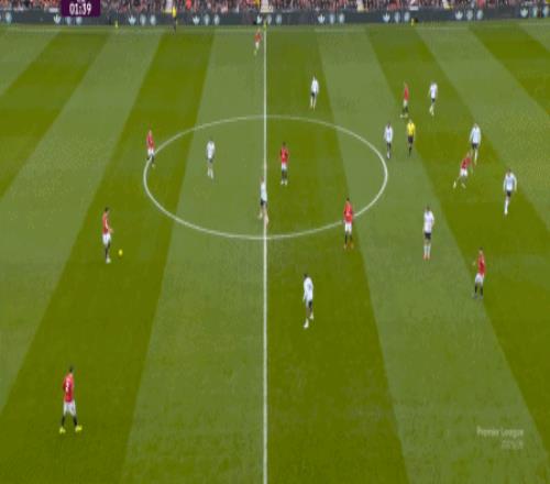 所以,在中后场已经开始面对压力的时候,曼联漏风是一方面,但找到方法给对手也制造压力是更重要的另一方面,在第5分钟,他们找到了这个方向: