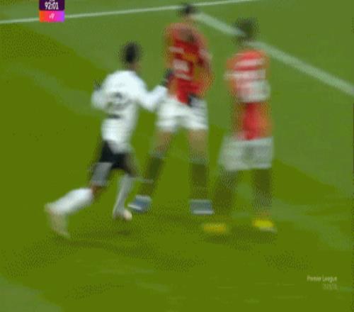 所以,曼联将更多的进攻势头集中到这一侧,顺带让擅长助攻的罗宾逊被迫回来保护,是一个很正确的选择,于是在第16分钟,库尼亚换位到这一边,直接和昆卡进行一对一,就制造了一次一度被当作点球的任意球机会: