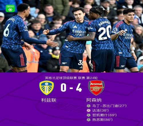剑南春丨阿森纳40利兹联,马杜埃凯助攻+造乌龙,哲凯赖什破门 -